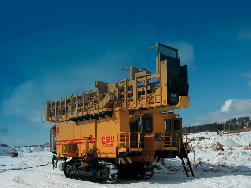 Реализованное нами решение значительно снижает затраты на обслуживание по сравнению с аналогами дизельных станков данного класса, а также сокращает время на перемещение станка, что, безусловно, сказывается на увеличении производительности и эффективности его использования. Была разработана модификация бурового станка СБШ-250 МН-32 с глубиной бурения 55 м, используемого для бурения взрывных скважин при заоткоске бортов карьера и на других специальных технологических работах.
