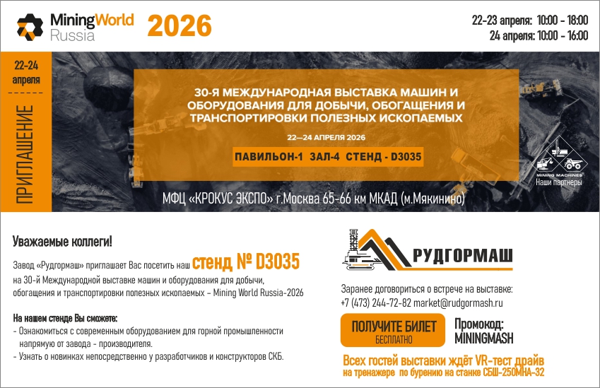 Приглашаем посетить стенд РУДГОРМАШ на выставке Mining World Russia-2026